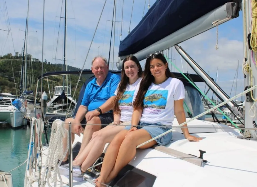 Ben Brauer, Stephanie Cornish, and Kimberly Wong ready to set sail on their first day of conducting coral surveys in several target sites in the Whitsunday Islands. Photo: Deborah Friend.