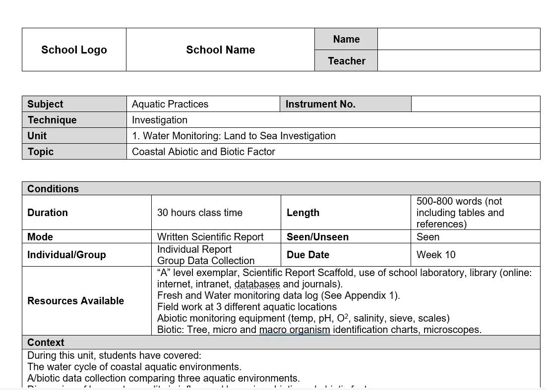 Water Quality Investigation
