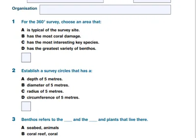 This module provides details of the 360° survey (5 metre radius circle) section of the Rapid Monitoring form, including percentage estimation of benthos categories.